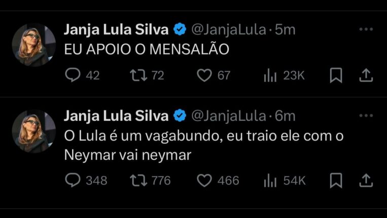 Muitas publicações traziam palavrões e expressões sexuais. Em uma delas, diz que “Lula é vagabundo” e que Janja o trai com o jogador Neymar.