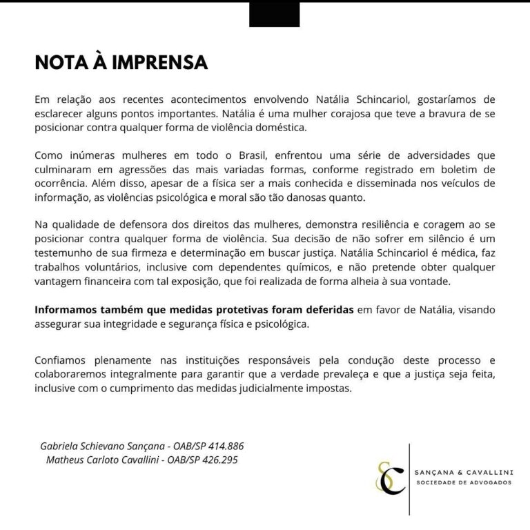 A defesa de Natália divulgou nota à imprensa com a linha de defesa dos advogados: