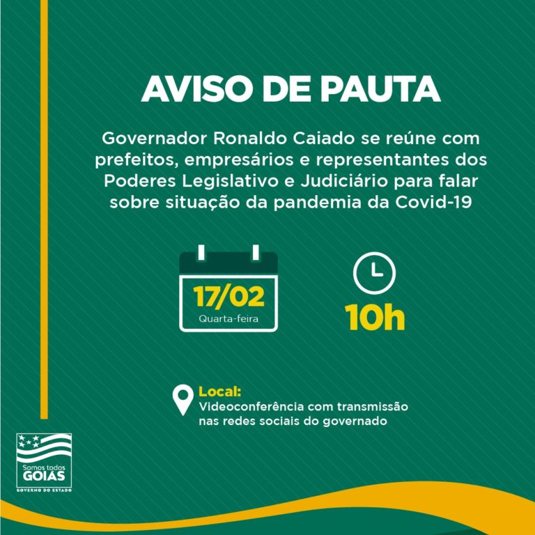 Também participarão da videoconferência representantes de entidades e dos Poderes Legislativo e Judiciário e do Fórum Empresarial. A população goiana poderá assistir a reunião, que será transmitida pelas redes sociais.