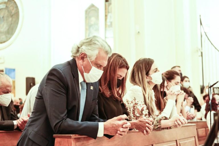 Ao lado da primeira-dama, Gracinha Caiado, governador uniu-se a familiares enlutados para celebração religiosa, conduzida por Dom Washington Cruz, em homenagem ao prefeito de Goiânia falecido no último dia 13 de janeiro