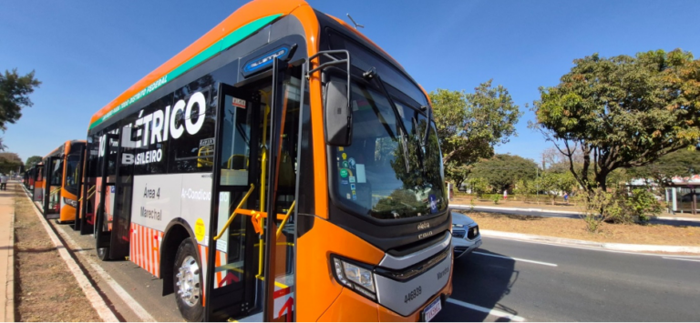 Ônibus elétricos, menos poluentes, já integram a frota do DF, apontando para um futuro mais sustentável na mobilidade. (Crédito: Agência Brasília)