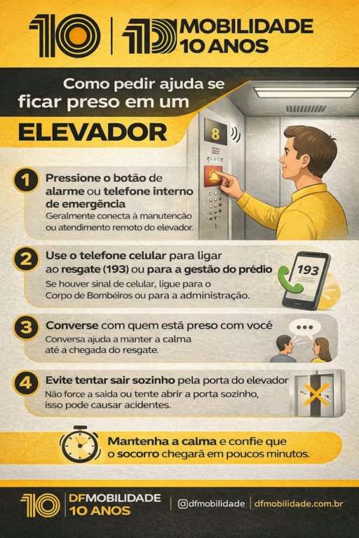 As ocorrências chamam atenção para a importância de manutenção preventiva regular dos elevadores e da correta instalação dos sistemas de comunicação de emergência nos condomínios, prédios comerciais e públicos do DF.