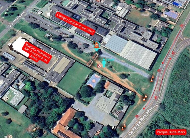 Nos dias do evento, o Detran-DF também fechará, a partir das 6h, os acessos à Via Contorno do Parque Burle Marx pela via W7 do Noroeste e pela via SRPN Trecho 1 (altura do Depósito do Detran-DF). Adicionalmente, o órgão bloqueará os acessos à Via Contorno, pela W5 Norte, nas proximidades da Ação Social Paula Frassinetti e do UniCeub. A previsão é que o tráfego de veículos seja liberado às 14h.