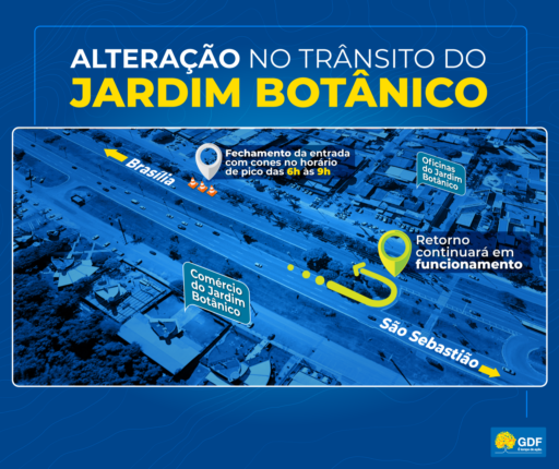 Além da interdição, a rotatória que fica nas proximidades do condomínio Mansões Califórnia terá a preferência alterada. Se antes o acesso ao balão era priorizado aos veículos que trafegavam pela marginal, agora a prevalência será dos motoristas vindos da DF-001. “Teremos painéis luminosos orientando os motoristas sobre todas essas mudanças no trânsito”, avisa Elcy.
