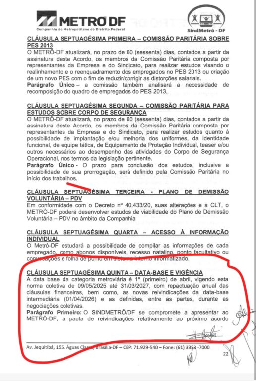 - Prazos de Renovação: Embora o acordo social e financeiro tenha validade até 2027, existem revisões intermediárias previstas para a data-base de 2026 para discutir cláusulas econômicas específicas.