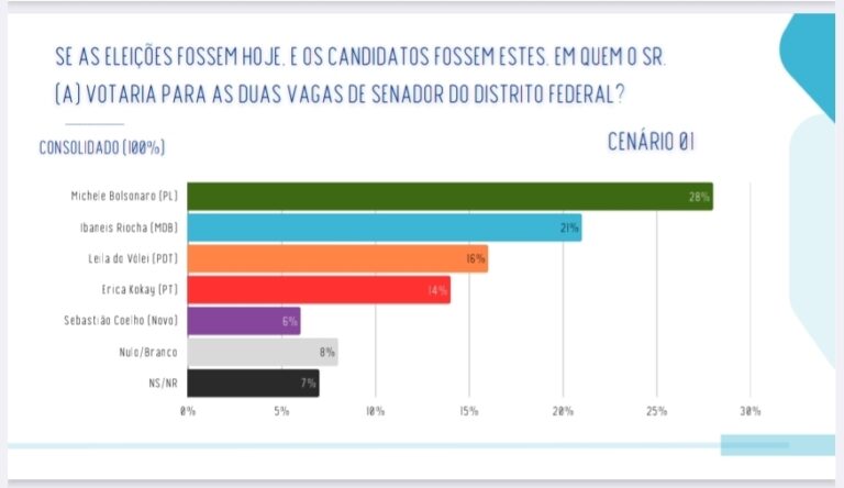 Com Sebastião Coelho (Novo) pontuando 6% e brancos/nulos somando 8%, o cenário não deixa margem para dúvidas. A dobradinha Michelle-Ibaneis não apenas vence; ela esmaga a narrativa petista e projeta um Senado hostil às aventuras ideológicas da atual gestão federal. Ibaneis Rocha segue gigante, provando que no DF, quem trabalha tem lugar garantido na história.