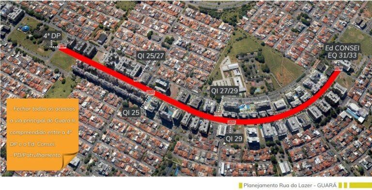 Também neste domingo, em função da Rua do Lazer do Guará, das 6h às 17h, todos os acessos à Avenida Central do Guará II, entre a 4ª Delegacia de Polícia e o Edifício Consei, na EQ 31/33, ficarão fechados. Além das interdições na via, as equipes do Detran-DF farão o controle do tráfego nas imediações do evento.