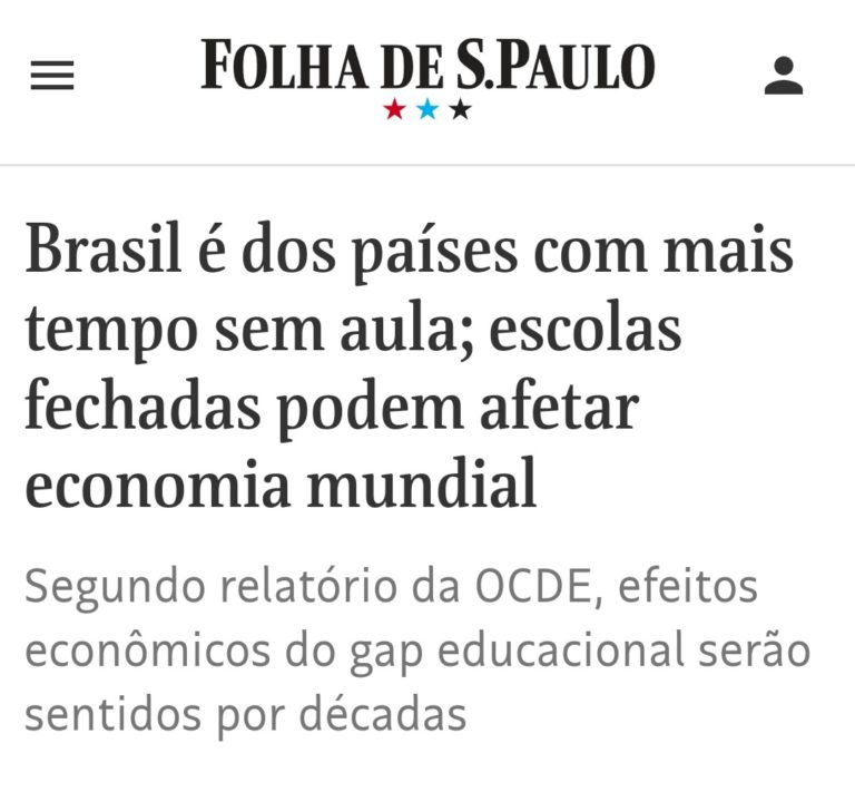 O Brasil foi o país que mais tempo manteve fechadas as escolas para as crianças durante a pandemia em 2020. É o que mostra um relatório da Organização para Cooperação do Desenvolvimento Econômico (OCDE) divulgado em setembro/2020 Foram 178 dias sem aulas presenciais na pré-escola e anos iniciais do ensino fundamental no ano passado, o triplo de tempo em comparação com a média dos países mais ricos.