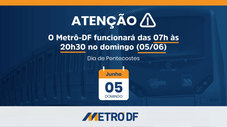 Conforme divulgado por este portal o Metrô-DF terá operação diferenciada, neste domingo (5/6), com horário ampliado: das 7h às 20h30.