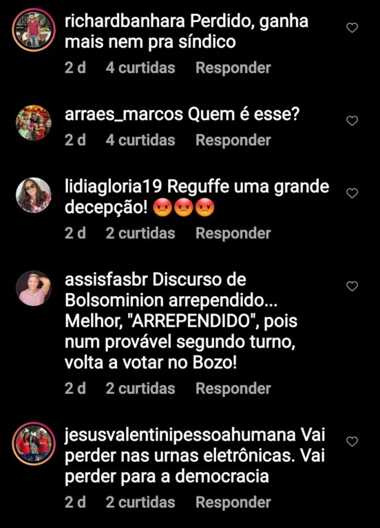 Nas redes sociais os comentários são negativos ao reaparecimento do político,  principalmente em ano eleitoral.