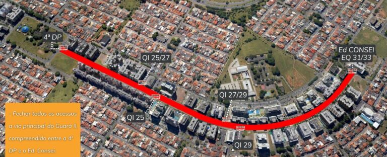 Para o domingo (7/12), está prevista a realização da Rua do Lazer do Guará. Entre 6h e 17h, todos os acessos à Avenida Central do Guará II, no trecho compreendido entre a 4ª Delegacia de Polícia e o Edifício Consei (EQ 31/33), permanecerão fechados. Equipes de fiscalização do Detran-DF estarão no local para realizar as interdições e controlar o tráfego nas imediações.