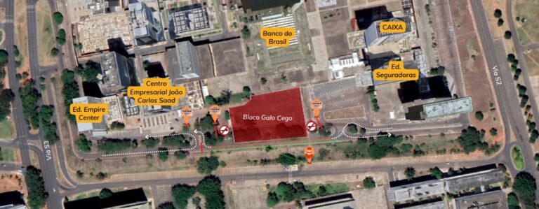 Já no Setor Bancário Sul, os blocos “Galo Cego” e “Carnaval Urgente” motivam interdições na quadra 2 desde a noite de sexta-feira (06/02), com inversão de fluxo em trechos da via interna até a noite de domingo.