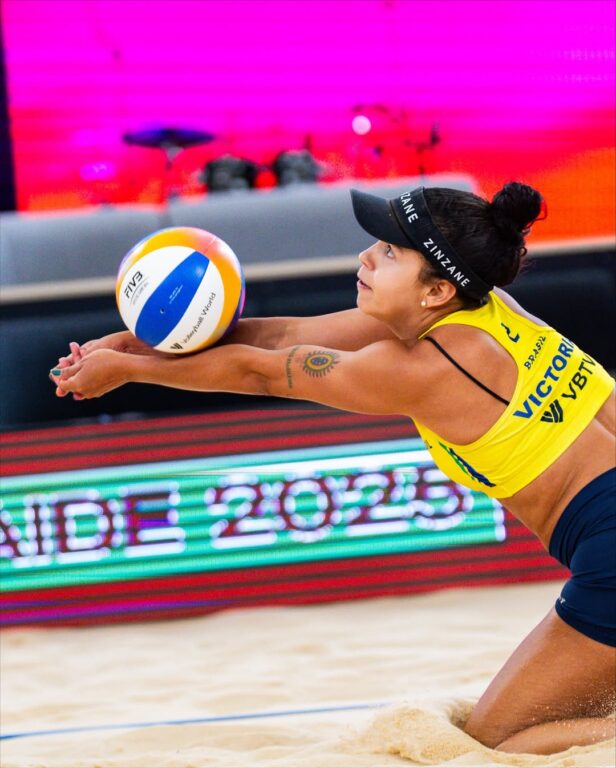Líderes do ranking mundial, Thâmela e Vic protagonizaram um duelo disputado contra as ucranianas Lazarenko e Romaniuk. Após vencerem o primeiro set e sofrerem o empate no segundo, as brasileiras dominaram a parcial decisiva, fechando o placar em 2 sets a 1. O próximo desafio será contra as italianas Gottardi e Orsi Toth.