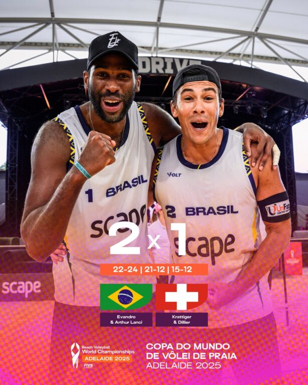 Recuperação marcou a vitória de Evandro e Arthur Lanci sobre os suíços Krattiger e Diller. A dupla perdeu o primeiro set em uma disputa equilibrada, mas reagiu nas parciais seguintes para virar o jogo e vencer por 2 sets a 1. Nas quartas de final, o desafio será contra os atuais campeões olímpicos, os suecos Åhman e Hellvig.