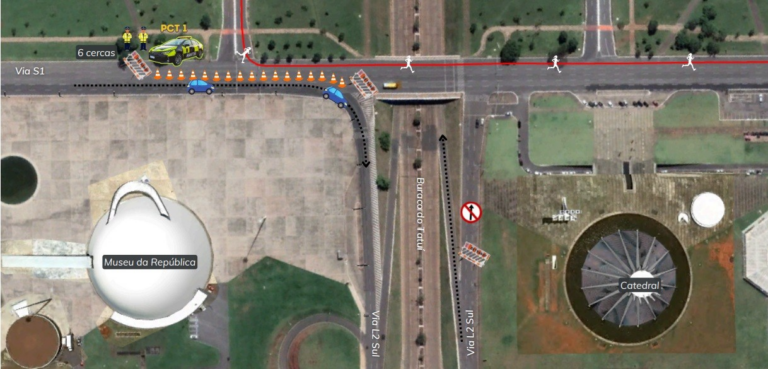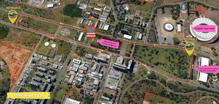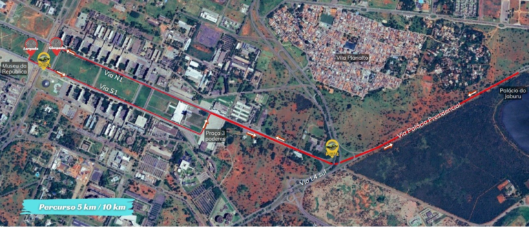 Já no domingo de manhã, o Circuito da Saúde ocupará as três faixas coladas ao canteiro central das vias S1 e N1, no trecho entre o Centro de Convenções Ulysses Guimarães e a Praça do Cruzeiro, mantendo o restante da pista liberada para os carros.