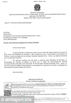 O aparelhamento e a sucessivas guerras do ministro da educação tem mais um capítulo; onde o Ministério da Educação – MEC, estratégico para os globalistas e ‘lobbie’ de empresários interessados nos contratos bilionários (merenda, escolar, livros didáticos e produção de conteúdo na TV e rádio), tem no ministro Abraham Weintraub o maior inimigo e articulam, nos corredores do Congresso Nacional, berço de lobistas poderosos, a sua exoneração.