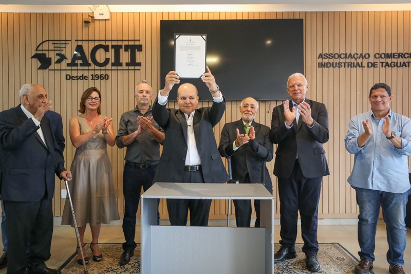 Na manhã desta quinta-feira, o governador do Distrito Federal, Ibaneis Rocha, entregou à Associação Comercial e Industrial de Taguatinga (ACIT) a escritura pública de concessão de uso de sua sede — um reconhecimento formal ao espaço onde a entidade atua há quase meio século. O documento regulariza a ocupação do imóvel no setor industrial de […]